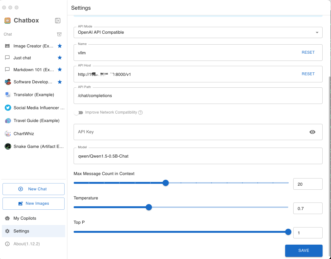 • API Host: http://{vllm server host}:{vllm server port}/v1
